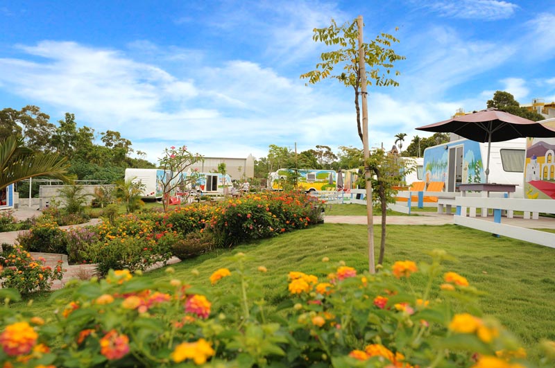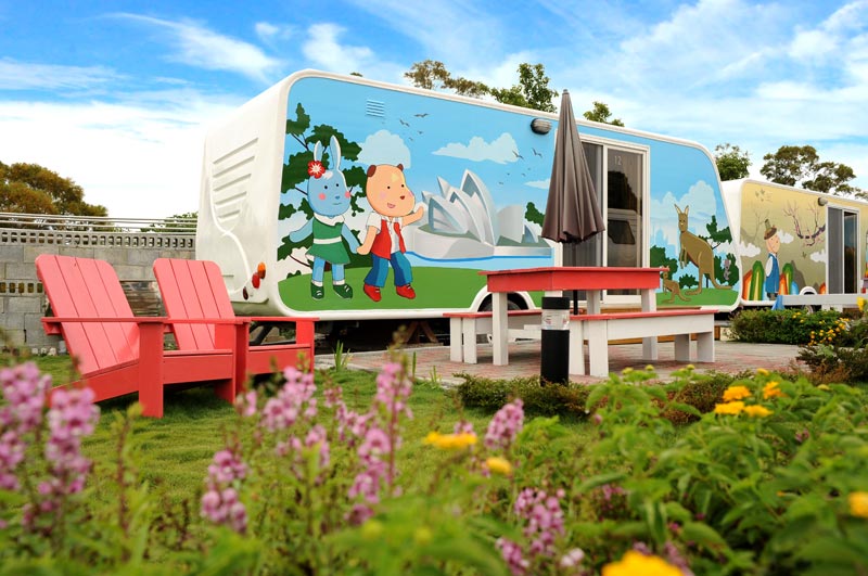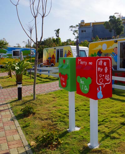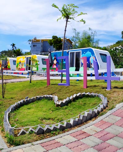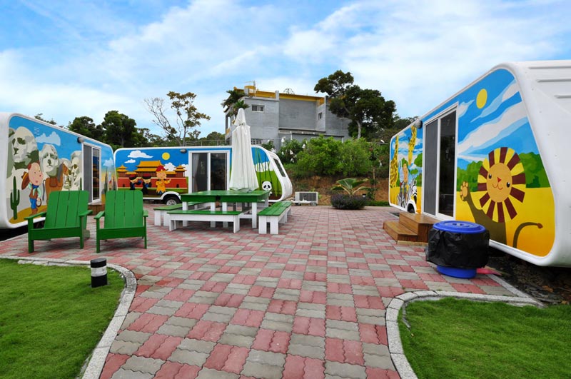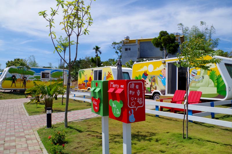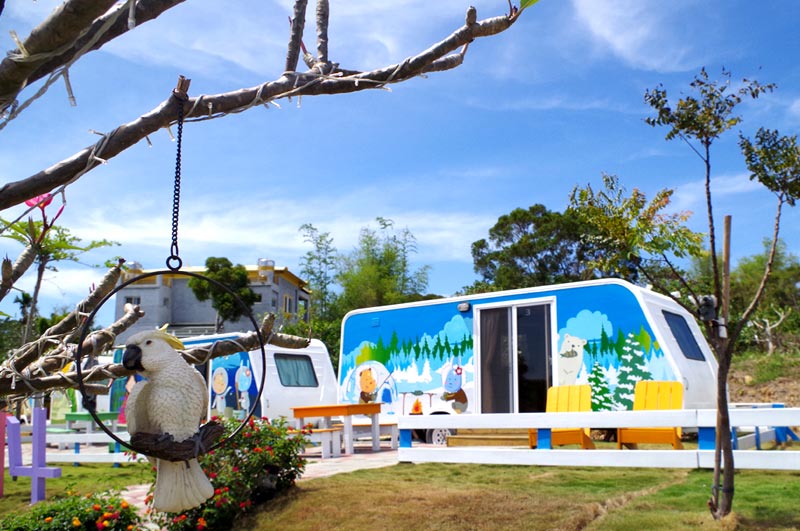 八海浬的房間都是用露營車,老闆很用心的將每台露營車的外觀都彩繪上各個國家的主題,韓國、
